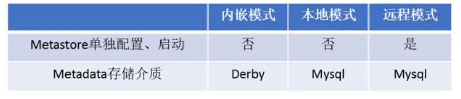 MetaStore服务配置有3种模式:内嵌模式、本地模式、远程模式。