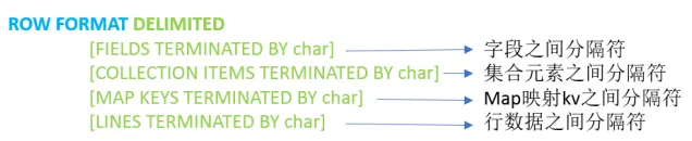 ROW FORMAT DELIMITED语法用于指定字段之间等相关的分隔符,这样Hive才能正确的读取分析数据。