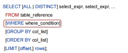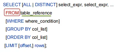 从哪里查询取决于FROM关键字后面的table_reference,这是我们写查询语句时首先要确定的