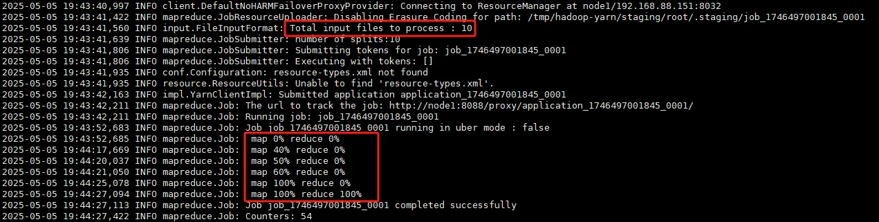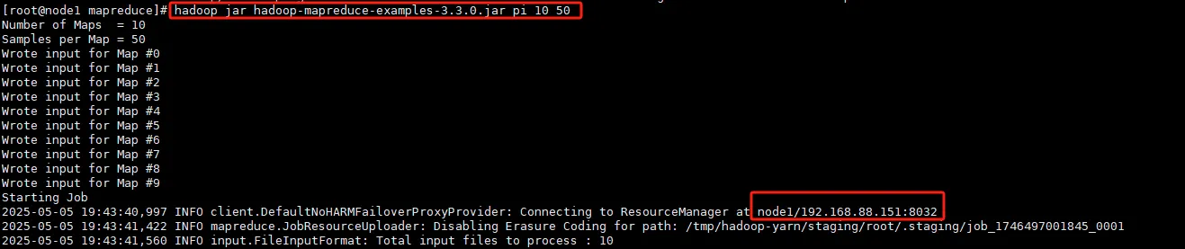hadoop jar hadoop-mapreduce-examples-3.3.0.jar pi 10 50