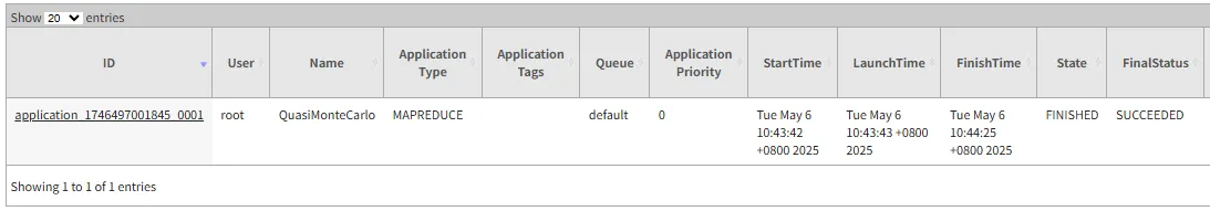 运行MapReduce程序评估一下圆周率的值,执行中可以去YARN页面上观察程序的执行的情况。