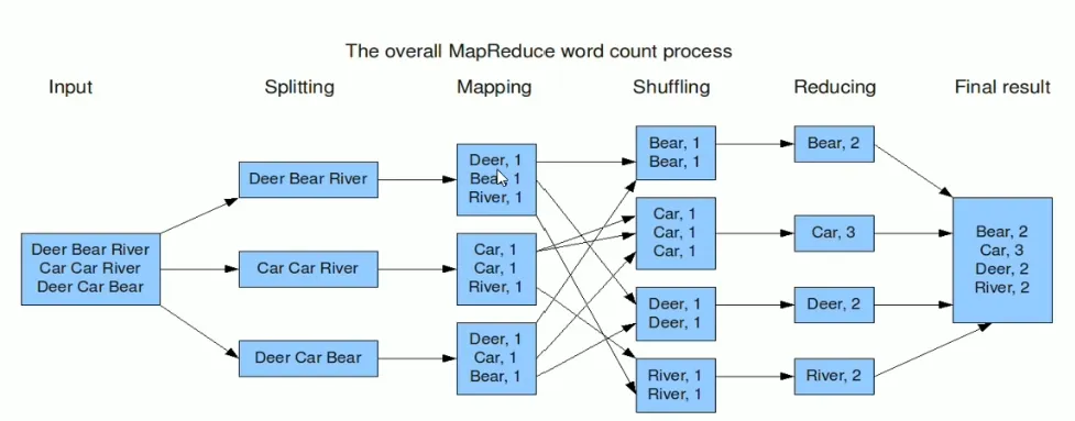 对于相互之间不具有计算依赖关系的大数据任务,实现并行最自然的办法就是采取MapReduce分而治之。